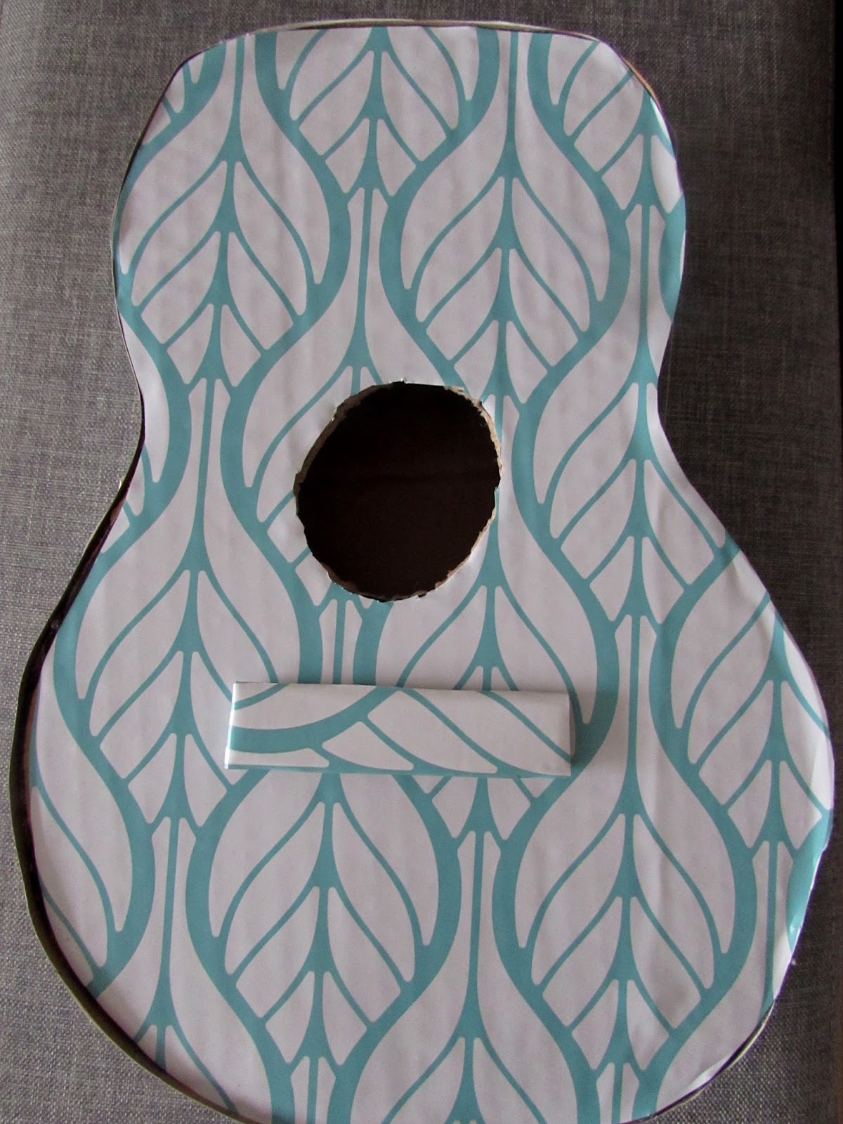 Wzorzystą okleiną obkleiłam środkowe kształty gitary i uchwyt.